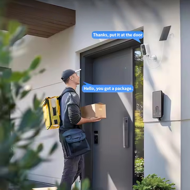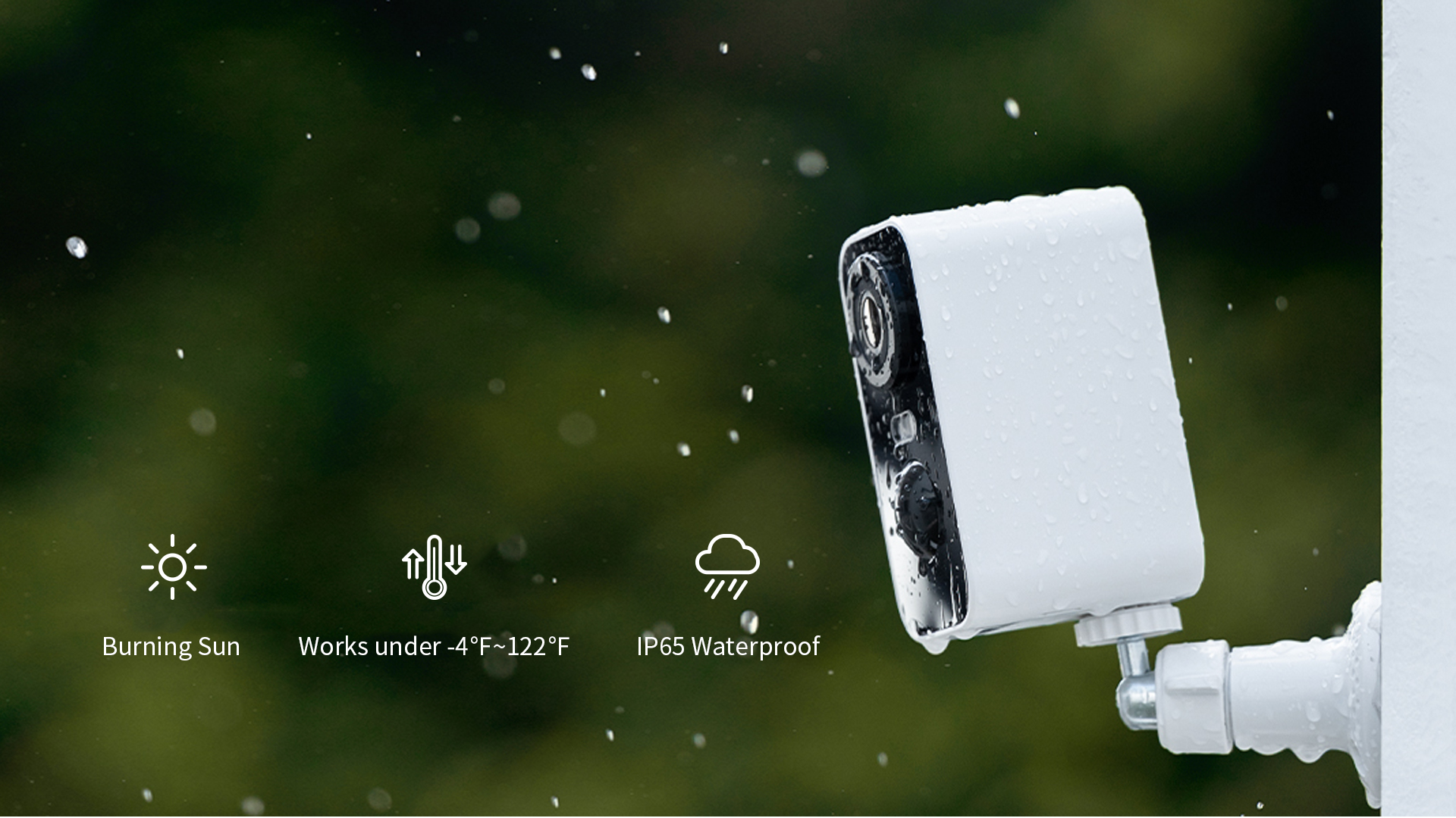 De beveiligingscamera heeft een ingebouwde 5200 mAh batterij en ondersteunt opladen via een zonnepaneel, waardoor hij dag en nacht blijft werken zonder onderbreking. Dankzij het 100% draadloze ontwerp kun je hem flexibel buiten installeren. Via de bijbehorende app kun je het batterijniveau realtime volgen.