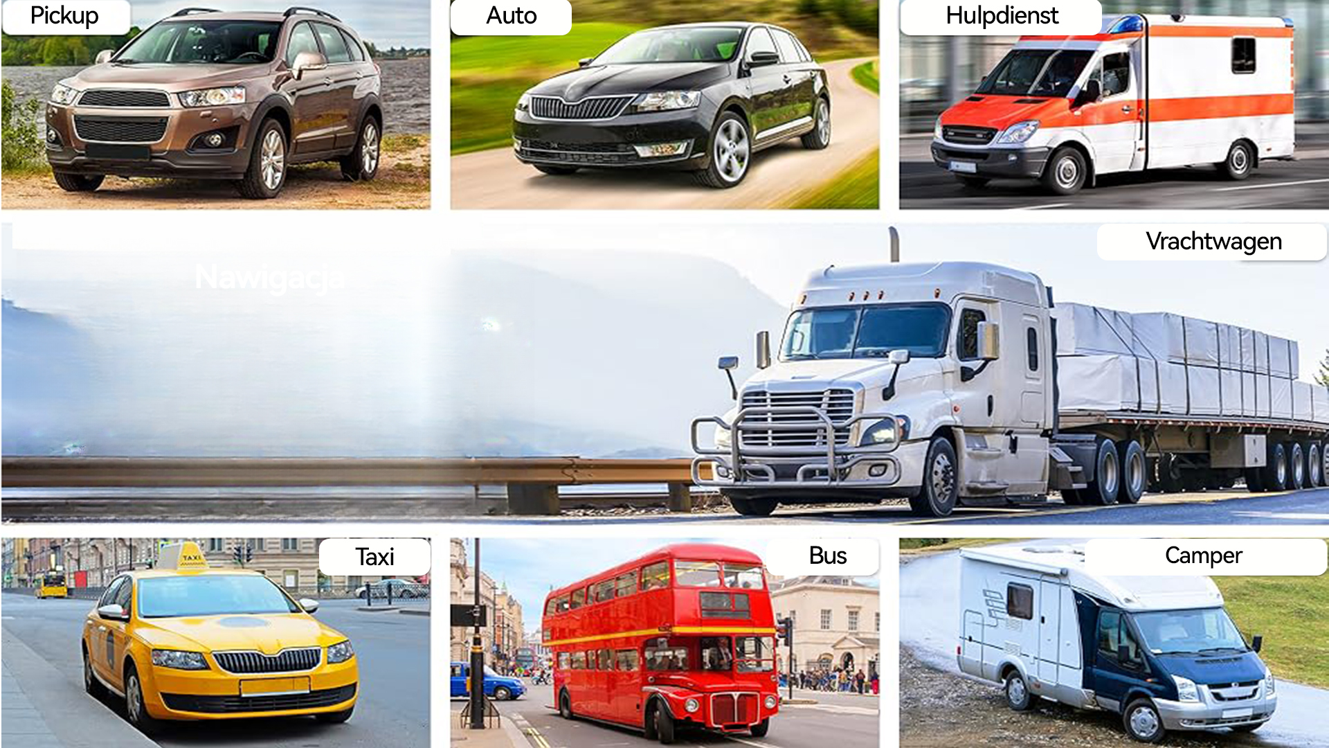 - Bestuurderswaarschuwingen, flitsmeldingen, snelheidslimieten, straatnamen, rijstrookbegeleiding en geschatte aankomsttijd