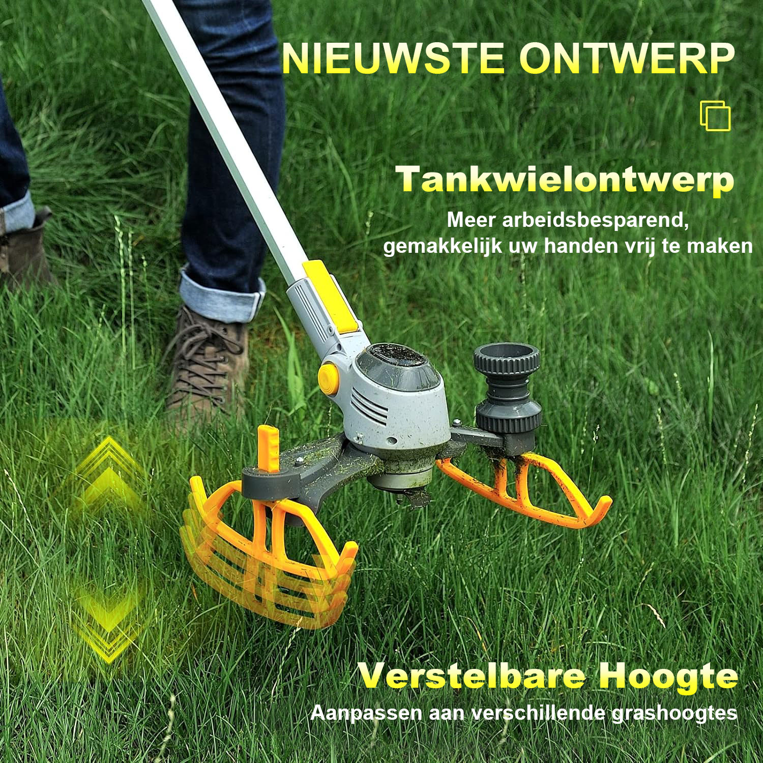 Of het nu gaat om vlakke gazons, glooiend terrein of ruimtes met obstakels, deze bosmaaier biedt optimale flexibiliteit. Dankzij zijn grote wendbaarheid kan hij efficiënt manoeuvreren in krappe hoeken en langs randen. Op heuvelachtig of ongelijk terrein helpen de instelbare hoogte-instellingen om een perfect gelijkmatige snede te garanderen. Door het multifunctionele ontwerp voor gebruik onder diverse hoeken, onderhoudt u moeiteloos een verzorgde tuin, ongeacht de vorm en complexiteit van het terrein.