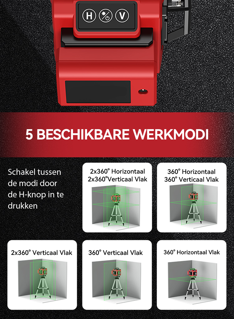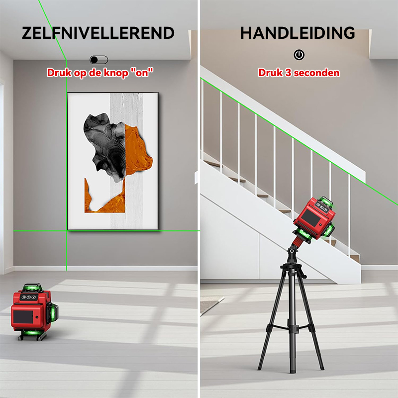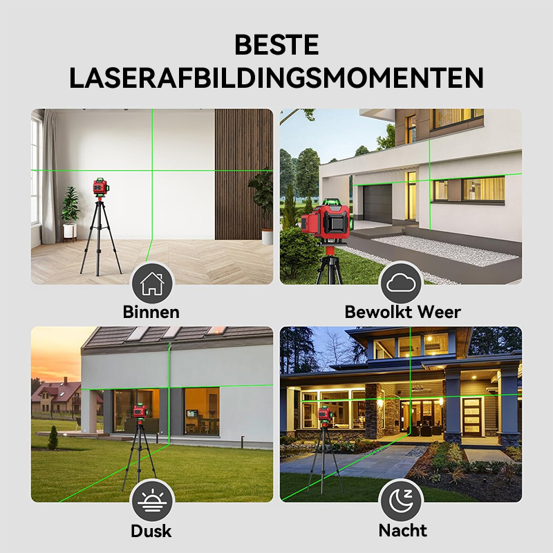 De goed zichtbare laserlijnen zijn duidelijk zichtbaar in zowel donkere als heldere omgevingen, wat zorgt voor nauwkeurige metingen en het minimaliseren van fouten. Met een veiligheidsclassificatie van Klasse II blijft de groene laser zeer helder en duidelijk, zelfs bij fel zonlicht.